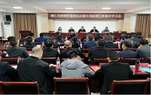 3月19日,铜仁市律师行业组织开展突出问题专项治理工作集中学习会。会议组织观看警示教育片、先进典型事迹宣传片;组织学习习近平总书记在中央全面依法治国工作会议上的讲话精神和防止干预司法“三个规定”。