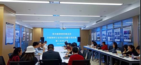 3月19日下午,贵州维律律师事务所开展“律师行业突出问题专项治理第三次学习会”。