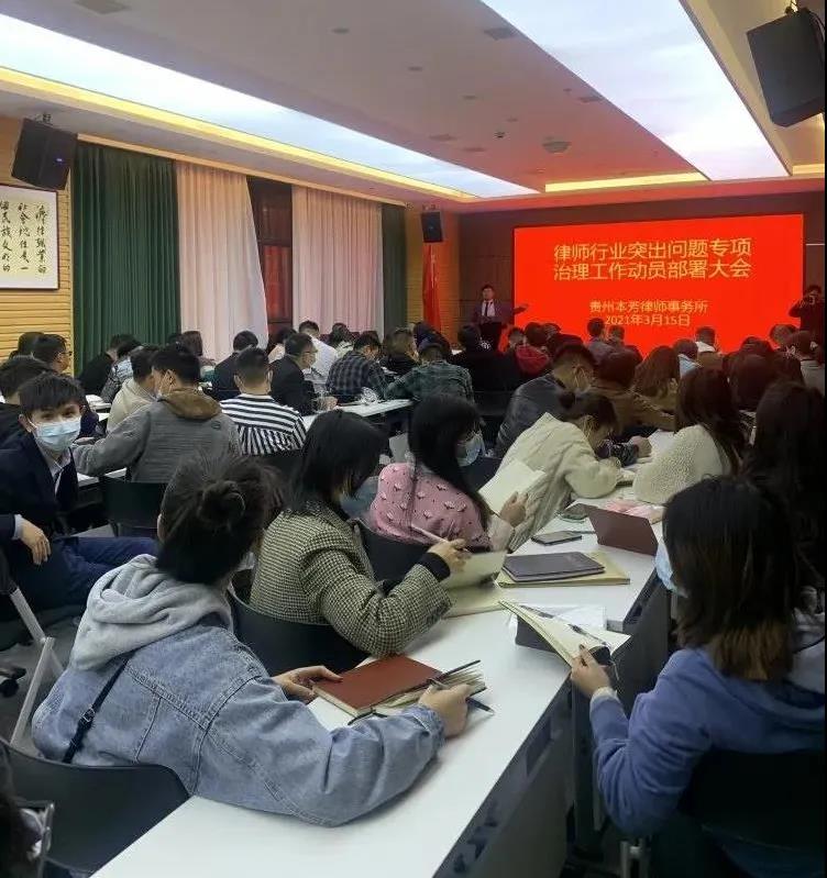 3月15日晚,贵州本芳律师事务所召开律师行业突出问题专项治理工作动员大会。