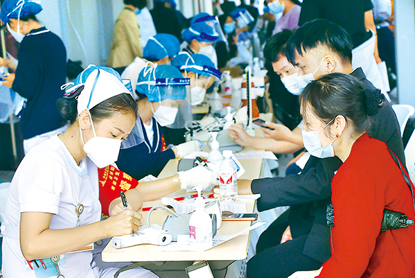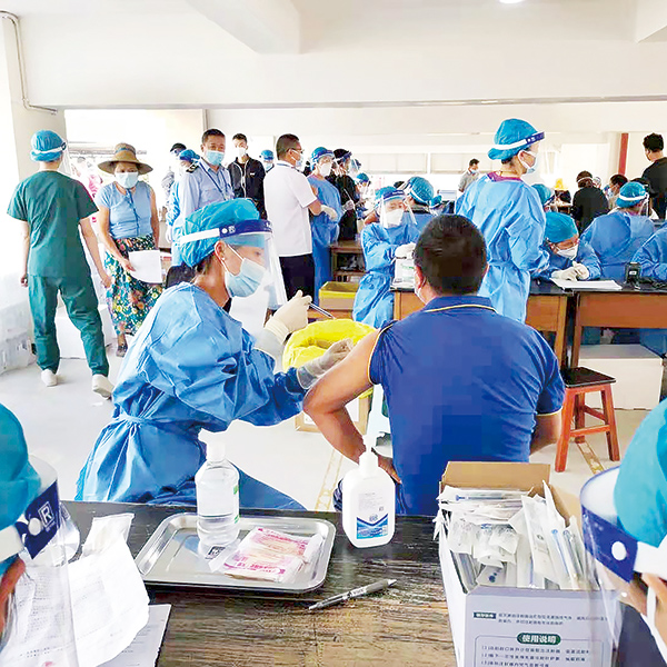 图②、图③:云南瑞丽市在全面开展全员核酸检测同时,有力有序开展新冠疫苗接种。杨雪梅 张文椿 摄影报道