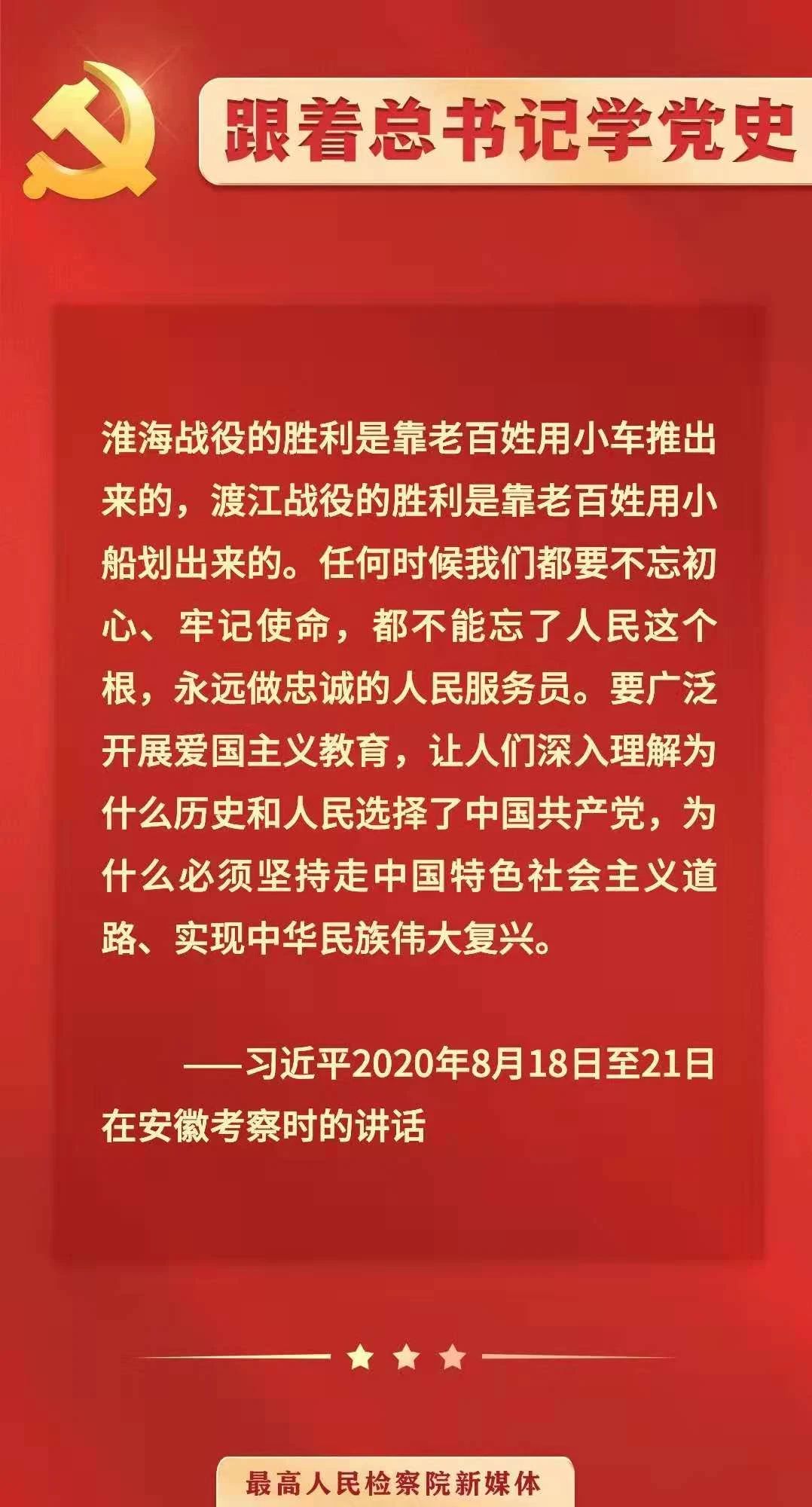 为庆祝中国共产党百年华诞,最高检新媒体开设“跟着总书记学党史”专栏,号召全国各级检察机关积极学党史、悟思想、办实事、开新局。