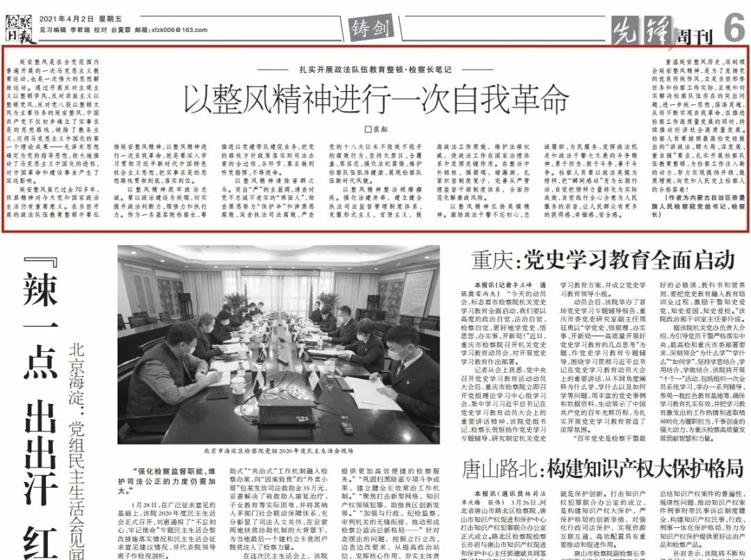 4月2日《检察日报》第6版——扎实开展政法队伍教育整顿·检察长笔记:以整风精神进行一次自我革命