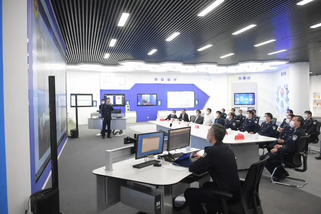 启动仪式后,与会人员共同前往联创中心演示测试中心,先后参观了理念设计、顶层设计、创新成果、智慧应用、科技设备、未来展望等9个板块,了解了近年来天津公安基层科技创新成果,观看了信息化创新应用实战案例展示,以及华为技术有限公司智慧屏、机器狗等最新科技技术成果的展示介绍。