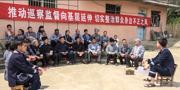 为充分发挥巡察联系群众纽带功能,黔南州荔波县针对部分少数民族聚居村寨群众不熟悉汉语情况,推行“双语”巡察,在“坡头会”“院坝会”、入户走访中用少数民族语言向群众宣传国家惠民政策,了解群众诉求,及时为民排忧解难,提升了巡察质效。(黔南州荔波县纪委监委供 李钢 摄)