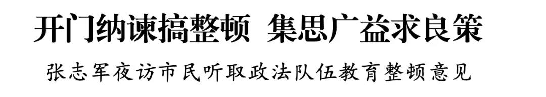 “开门”搞整顿、“开门”找问题、“开门”验成效。4月8日晚,全国政法队伍教育整顿中央第二督导组组长张志军深入我市社区,走到居民身边,虚心听取对政法队伍教育整顿意见。