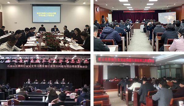 (五)工作开展突出行业和区域特色。朝阳区将兼职律师管理列为治理重点;海淀区建立“点对点”指导机制;门头沟区将专项治理学习教育与服务发展品牌建设相结合;房山区提前做好自查核查阶段工作;昌平区建立“党建+队建”双轨并行机制;通州区每周发布一期应知应会学习内容。