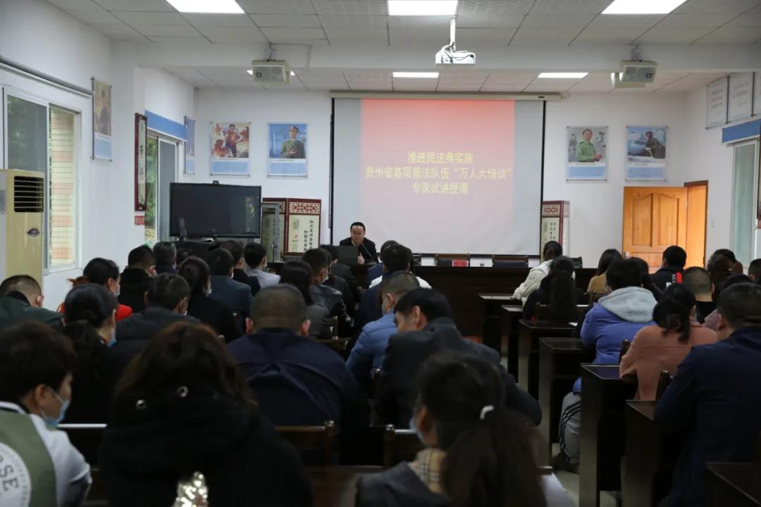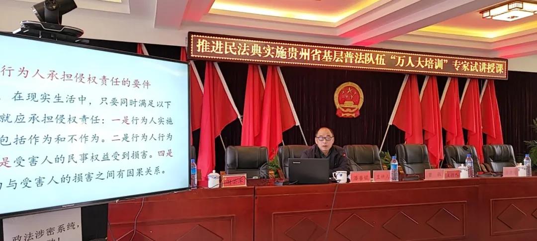 据悉,此次试讲为“推进民法典实施贵州省基层普法队伍‘万人大培训‘”预热活动。为深入推进民法典在贵州全面实施,省委依法治省办决定以村(社区)“两委”成员、基层人民调解员、网格员、村(居)民小组长等“法律明白人”为重点对象,采取“线上”集中授课结合“线下”定向指导的形式,于5月在全省开展“推进民法典实施贵州省基层普法队伍‘万人大培训’”,以打造一支庞大的民法典基层普法队伍,帮助广大基层普法工作者学好用好民法典,引导广大群众深刻认识到民法典既是保护自身权益的法典,也是全体社会成员都必须遵循的规范,养成自觉守法的意识,形成遇事找法的习惯,培养解决问题靠法的意识和能力,进一步夯实法治贵州建设基础,为贵州高质量发展营造良好法治氛围。