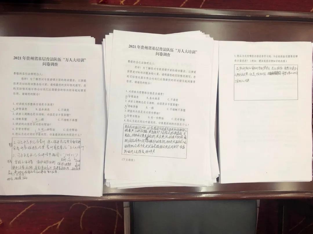 为让本次“线上集中授课”更具针对性,让大家听得懂、弄得明白,真正达到预期效果,4月9日至15日,培训专家组6名专家将深入贵阳市6个乡镇(街道)为“法律明白人”开展共6场试讲,同时通过发放问卷调查的方式收集听众意见建议及需求,完善调整教学方案。