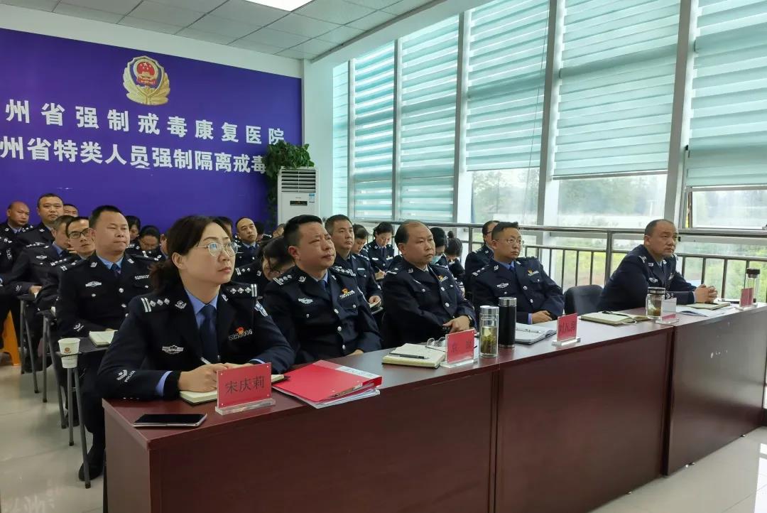 省戒毒局领导班子成员,二级巡视员,局机关内设机构全体民警,各强制隔离戒毒所设分会场,共575人参加会议。