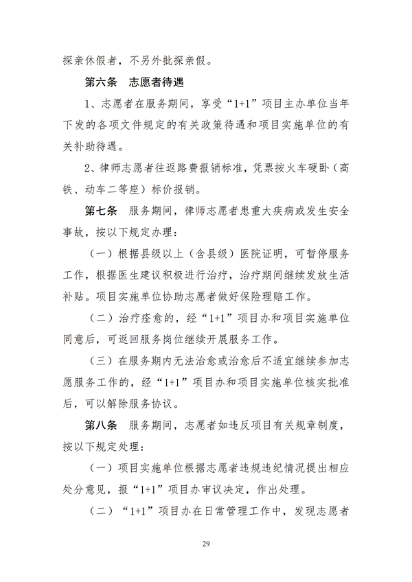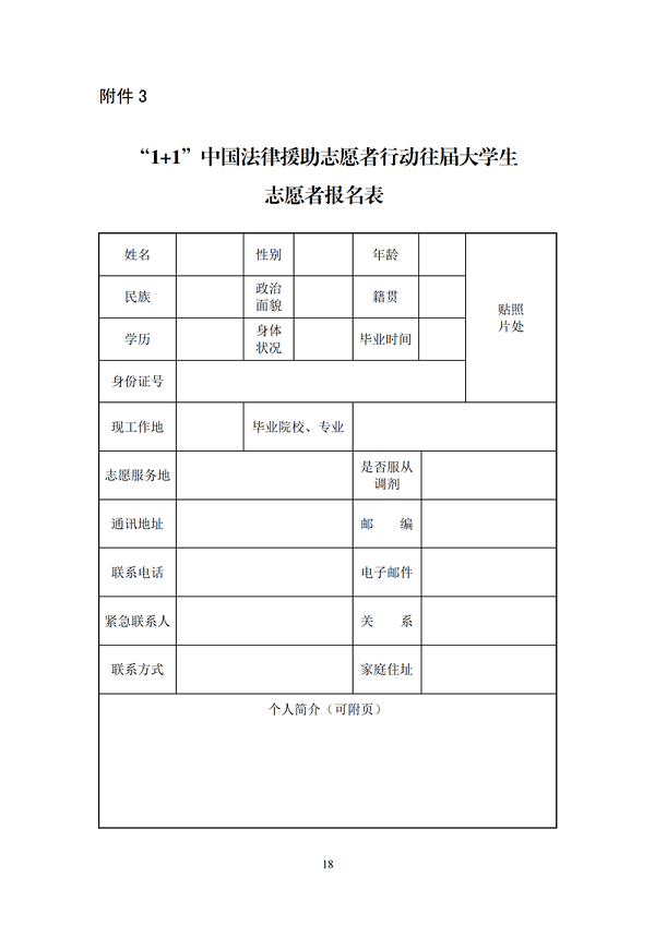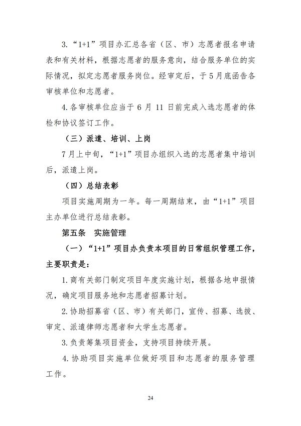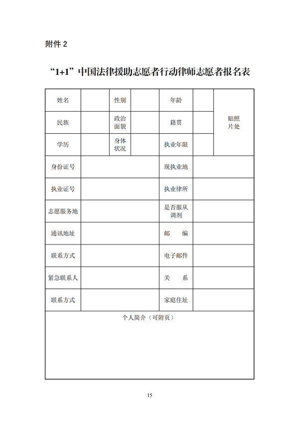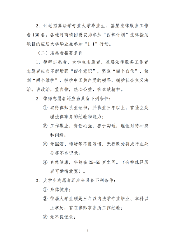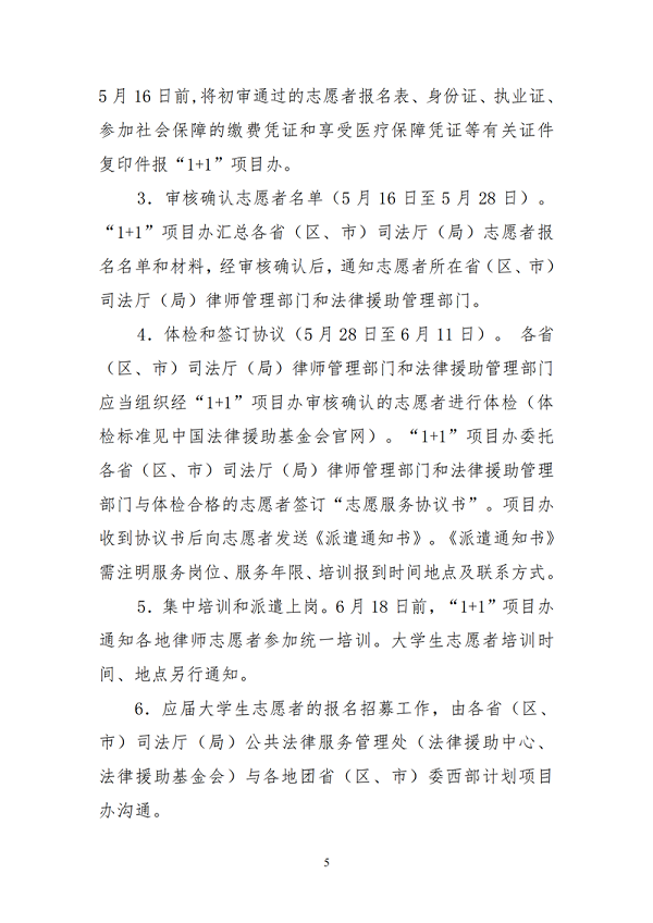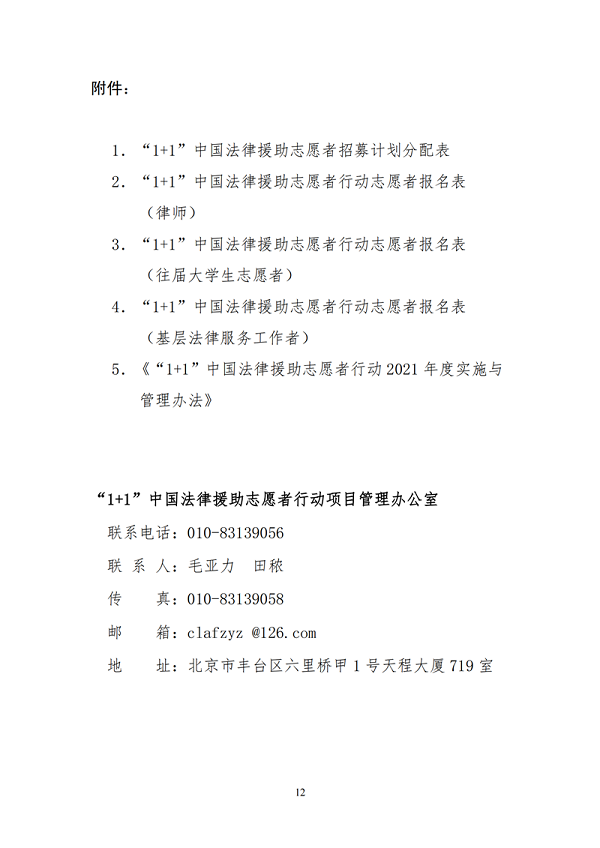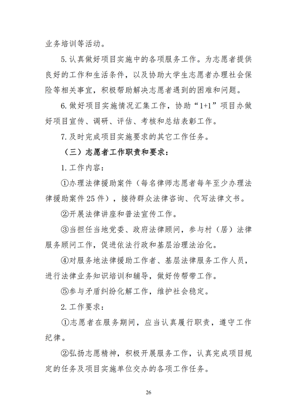 根据司法部公共法律服务管理局、司法部律师工作局、司法部法律援助中心、中华全国律师协会、中国法律援助基金会《关于做好2021年度“1+1”中国法律援助志愿者行动组织实施工作的通知》(法援基联发[2021]3号)的通知要求,为了认真做好我省2021年度“1+1”中国法律援助志愿者行动(以下简称“1+1”行动)工作,进一步加大向律师资源不足地区派遣志愿者的力度,保证困难地区群众法律援助需求与合法权益,现将2021年度“1+1”中国法律援助志愿者行动先关事宜通知如下: