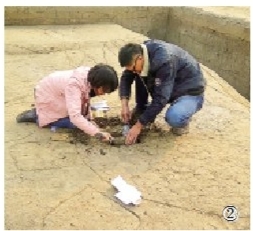 图②:考古人员在河南淮阳时庄遗址发掘现场取样。新华社发(河南省文物考古研究院时庄遗址考古队供图)
