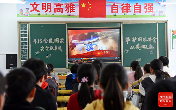 河南省武陟县组织学生观看安全教育视频、讲述安全教育故事等,让孩子们从小懂得“国家利益、高于一切,国家安全、人人有责”的道理。(河南省武陟县纪委监委供 荆小斌 摄)