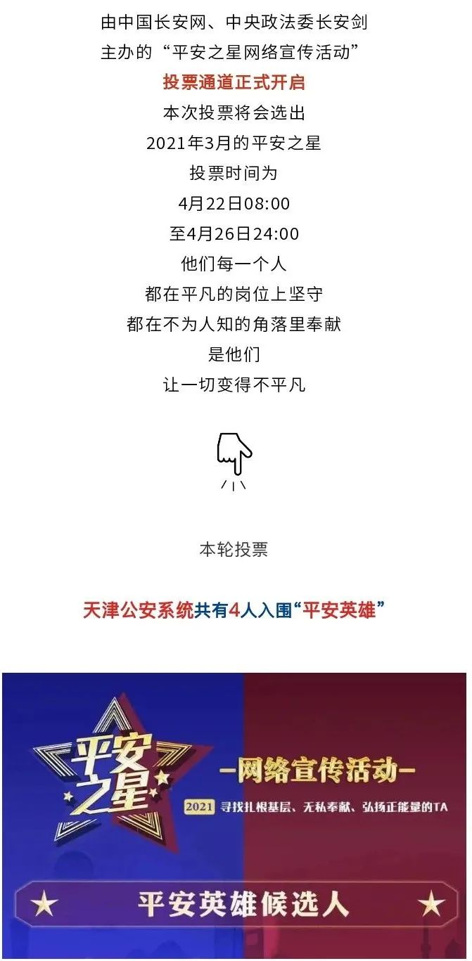 12 陈洪革 公安河西分局 如果不是这样突然离去,陈洪革可能依然会在岗位上默默辛苦地工作,一如他从警的每一天。没有更多人知道他的名字,他会慢慢老去,直到退休,然后回到家中含饴弄孙,尽享天伦…… 然而,这所有的一切,都被定格在2021年3月7日19时12分,所有的拼搏与奉献,所有的忠诚与担当,都在这一刻凝结为永恒,凝结成用生命写就的誓言。 长按上图扫描二维码为陈洪革投票 35 张凯 公安东丽分局治安管理支队 他干过刑警,无数次与不法分子正面交锋,让案件真相水落石出;如今,他成为治安管理先锋,日夜奔忙守护辖区安全、百姓安居乐业。 他是张凯,现任公安东丽分局治安管理支队副支队长。从警24年,他无论身在哪个岗位,总是勤勤恳恳,扎实苦干,用实际行动擦亮胸前的党徽和头顶的警徽…… 长按上图扫描二维码为张凯投票 36 任立新 公安河东分局大直沽派出所 1984年,任立新从部队转业,成为一名公安民警。从穿上警服那天起,“人民公安为人民”的铮铮誓言就融入了他日复一日的辛勤工作中。 37年来,任立新在公安基层岗位恪尽职守。2020年,他积劳成疾,突发脑梗住院,随后又被查出膀胱癌,在勇战病魔的同时,他想到更多的还是工作…… 长按上图扫描二维码为任立新投票