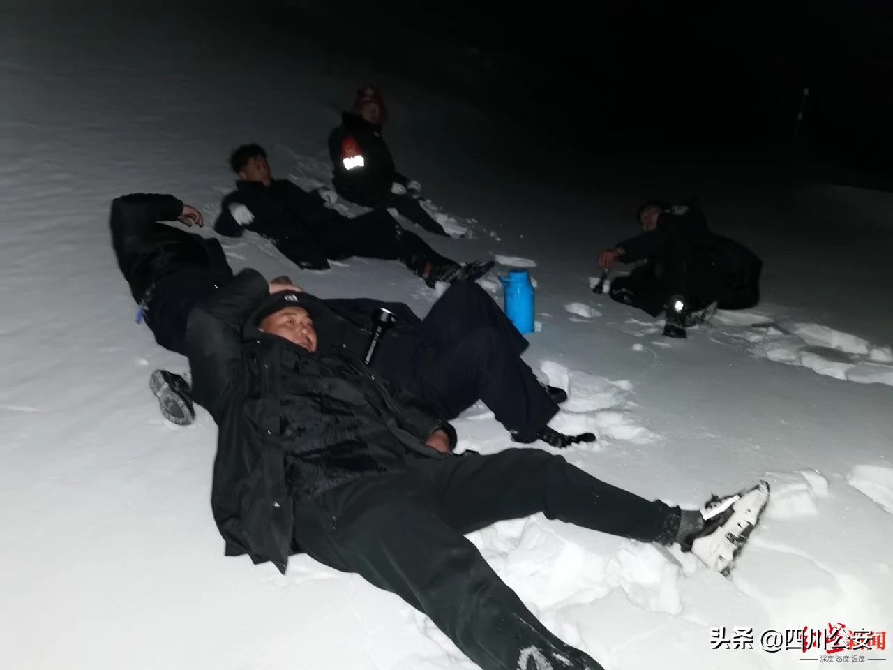救援人员决定,借着手电筒的光,沿着雀儿山老路爬坡呼喊寻找。一路上,积雪越来越深,前行的速度也大大减缓。累了就在雪地上休息一会儿,然后继续爬山寻找被困人员。
