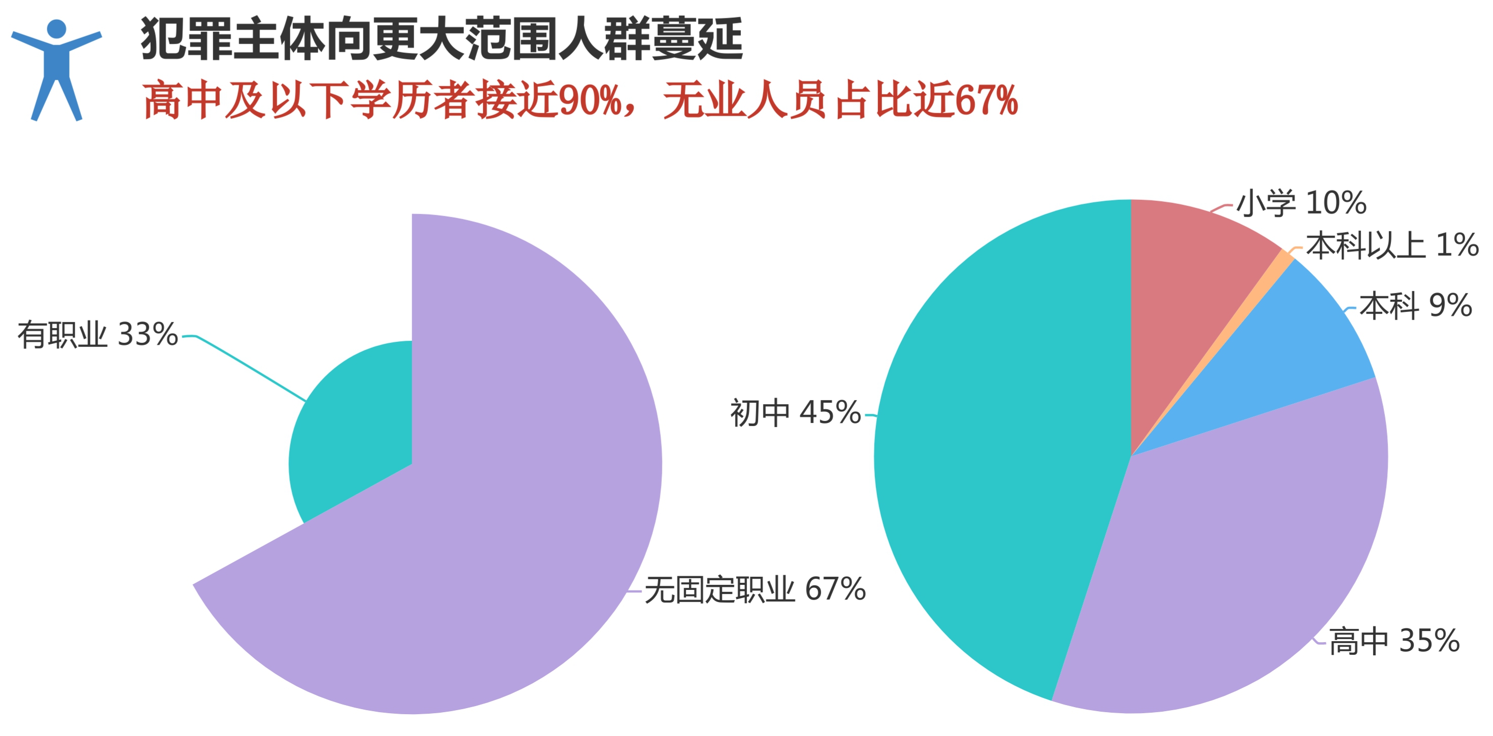 另外,网络犯罪集团化、跨境化特征凸显,犯罪主体呈现低年龄、低学历、低收入的“三低”趋势,老年人与年轻人更易成为受害对象。