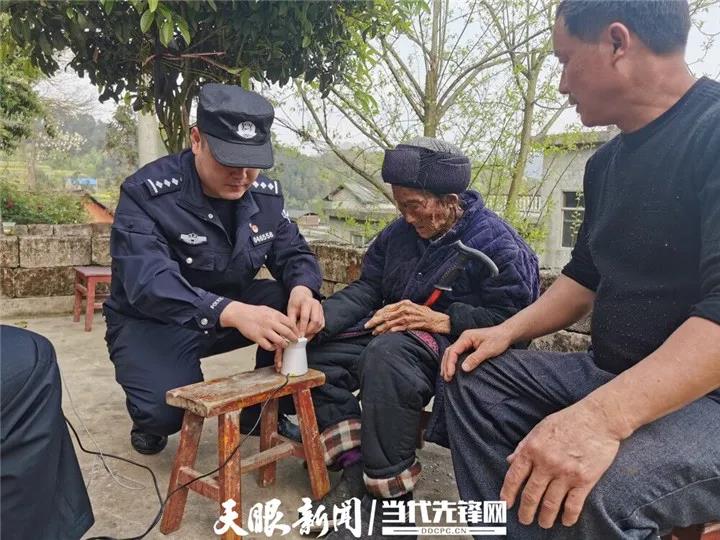 在长顺县,该县公安局户籍民警进村入户,为行动不便的百岁老人办理身份证。