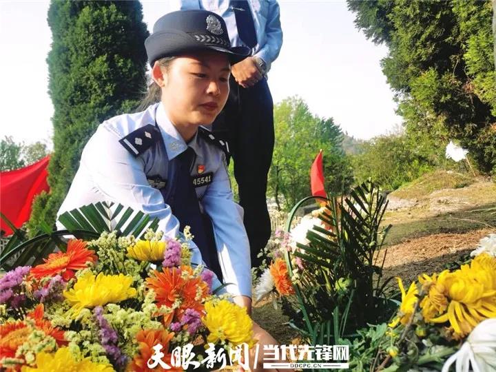 普定县公安局组织青年民警代表在东华山烈士陵园开展清明祭扫活动。严勇 摄