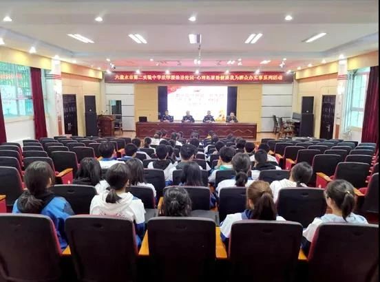4月9日,六盘水监狱在六盘水市实验二中的大力支持下,由监狱教育改造科、组织宣传科、团委和心理矫治中心组成的活动组一行五人,采取走进校园开展普法宣传和心理健康教育的组合模式,试点性地进行预防青少年犯罪和心理健康拓展工作。