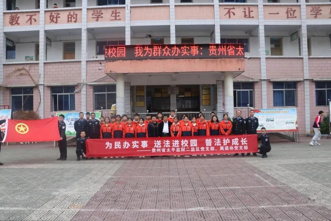4月9日下午,阳光明媚,和风飒爽,贵州省太平监狱二监区党支部和离退休党支部到安顺市三联学校开展“为群众办实事 送法进校园 普法护青春”的主题活动。