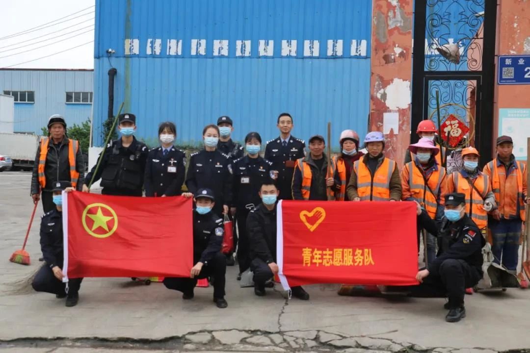 4月16日,监狱团委组织民警来到京河环卫所管辖区域与环卫工人一起在花溪区开发大道开展环境卫生清洁活动。