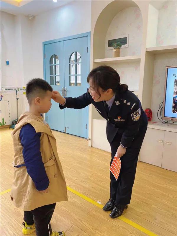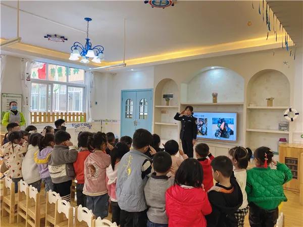 活动中,民警龙芳围绕警察的种类,比如刑警、消防警察、监狱警察等分别介绍他们的主要职责和功能,小朋友们遇到什么样的问题该找什么警察等方面,通过求助小游戏与学生积极互动,全面讲解了生活中常见且潜在的危险、如何预防、自救方法等方面的安全知识,教育引导幼儿学会做好自身安全保护。