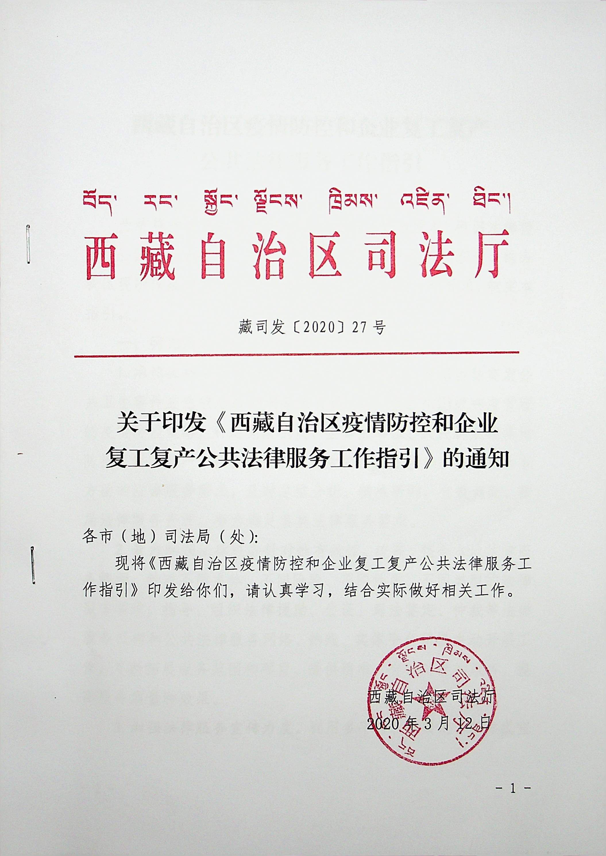 西藏自治区疫情防控和企业复工复产