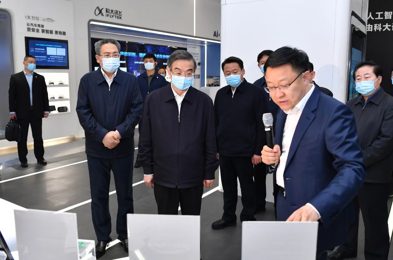图为周强、李锦斌在科大讯飞公司调研。程兆 摄