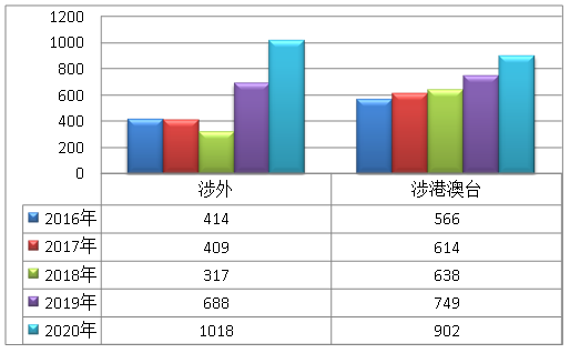 图5:近五年广东法院受理涉外、涉港澳台知识产权案件数量
