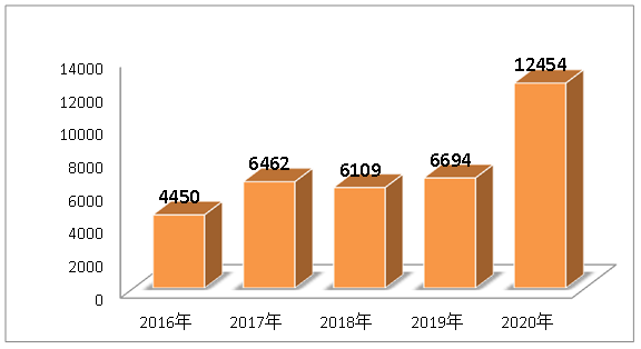 图2:近五年广东法院受理知识产权民事一审案件数量
