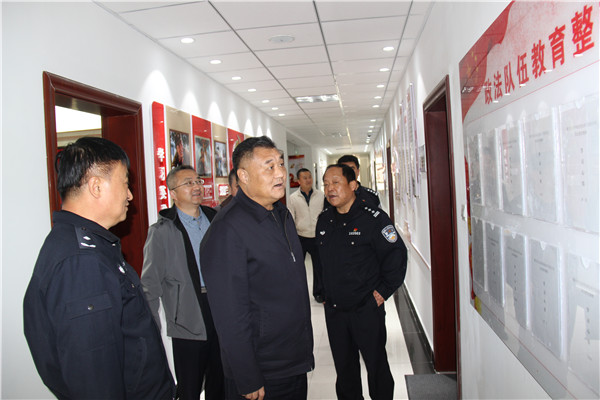 督导组先后来到分局和济民路派出所,对教育整顿内部宣传氛围营造、档案建设进行了仔细翻阅查看,分局党支部书记、局长艾民向督导组汇报了分局队伍教育整顿查纠整改工作推进情况、下步工作措施。