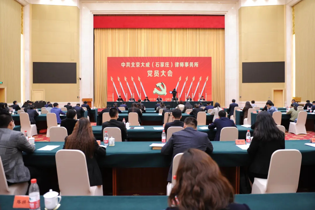 省司法厅党委委员、副厅长,省律师行业党委副书记霍建明到会指导。省律师行业党委副书记、省律师协会会长张金龙,省律师行业党委委员、省司法厅律师工作管理处处长崔振晓,省委统战部知工处副处长王俊等出席会议。北京大成(石家庄)律所69名党员及律所管理层代表参加会议。