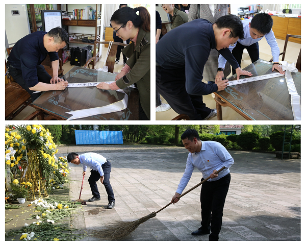 李玉峰同志带领党员代表敬献花篮并整理飘带