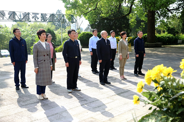 4月21日,省司法厅机关党办党支部和普法与依法治理处党支部到贵阳市爱国主义教育基地贵州人民抗日战争纪念碑前开展主题党日活动,共同缅怀革命先烈,追思红色历史,牢记初心使命,重温入党誓词。省司法厅党委委员、厅政治部(警务部)主任李玉峰同志到支部工作联系点指导工作并以普通党员身份参加活动。