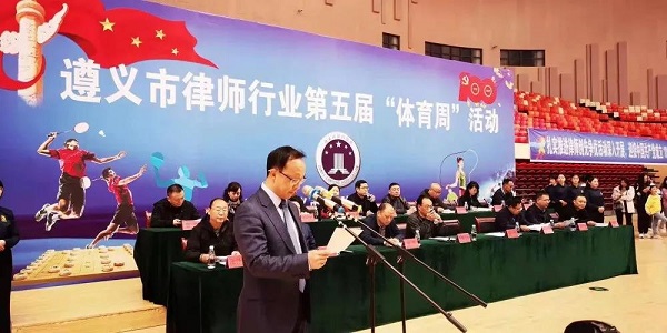 省律师协会副会长、贵阳律师协会会长薛军首先为开幕式致辞。他表示,体育能够激发广大律师积极向上的一面,体育赛事更能够激励广大律师勇往直前,遵义市律师协会精心组织的体育周活动,向社会各界呈现了遵义律师的团结、健康、担当。