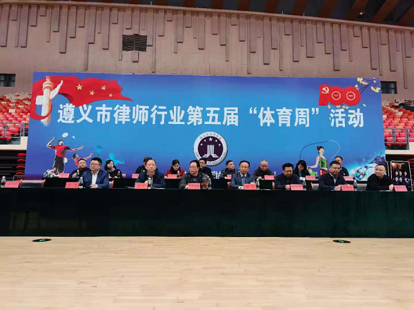 2021年4月17日上午,遵义市律师协会第五届“体育周”活动在新蒲新区奥体中心正式开幕。开幕式由遵义市律协副会长池泽江主持。省律协副会长、遵义市律协会长令狐兴中宣布开幕。省律协副会长、贵阳市律协会长薛军,省律协文体委主任王飞,遵义市律师行业党委专职副书记邹琰,贵阳市律协、遵义市律协相关班子成员等出席开幕式。