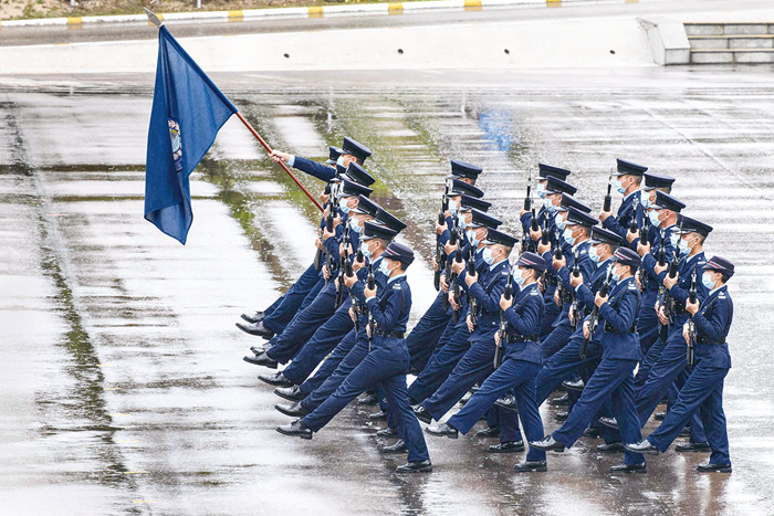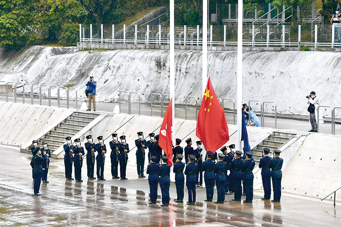经过驻港部队训练,香港警察学会了齐步走、正步走。队列口令也首次由英语改为广东话或普通话。护旗手肩扛五星红旗、香港区旗、香港警队队旗,走在队伍的前方。纪律部队高喊嘹亮的口号,“香港警察,忠诚护国安,勇毅保家安!”