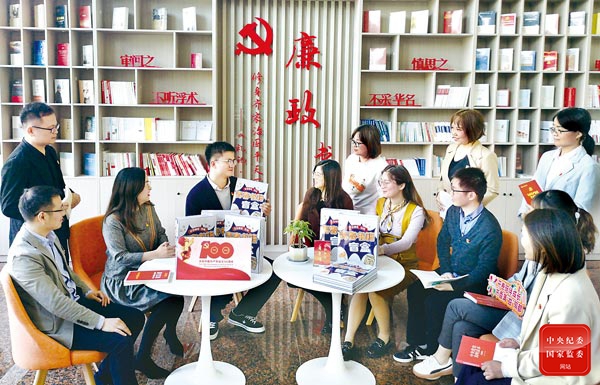 图①:江苏省宜兴市纪委监委青年干部交流党史学习教育读书体会。邹宜宾 摄