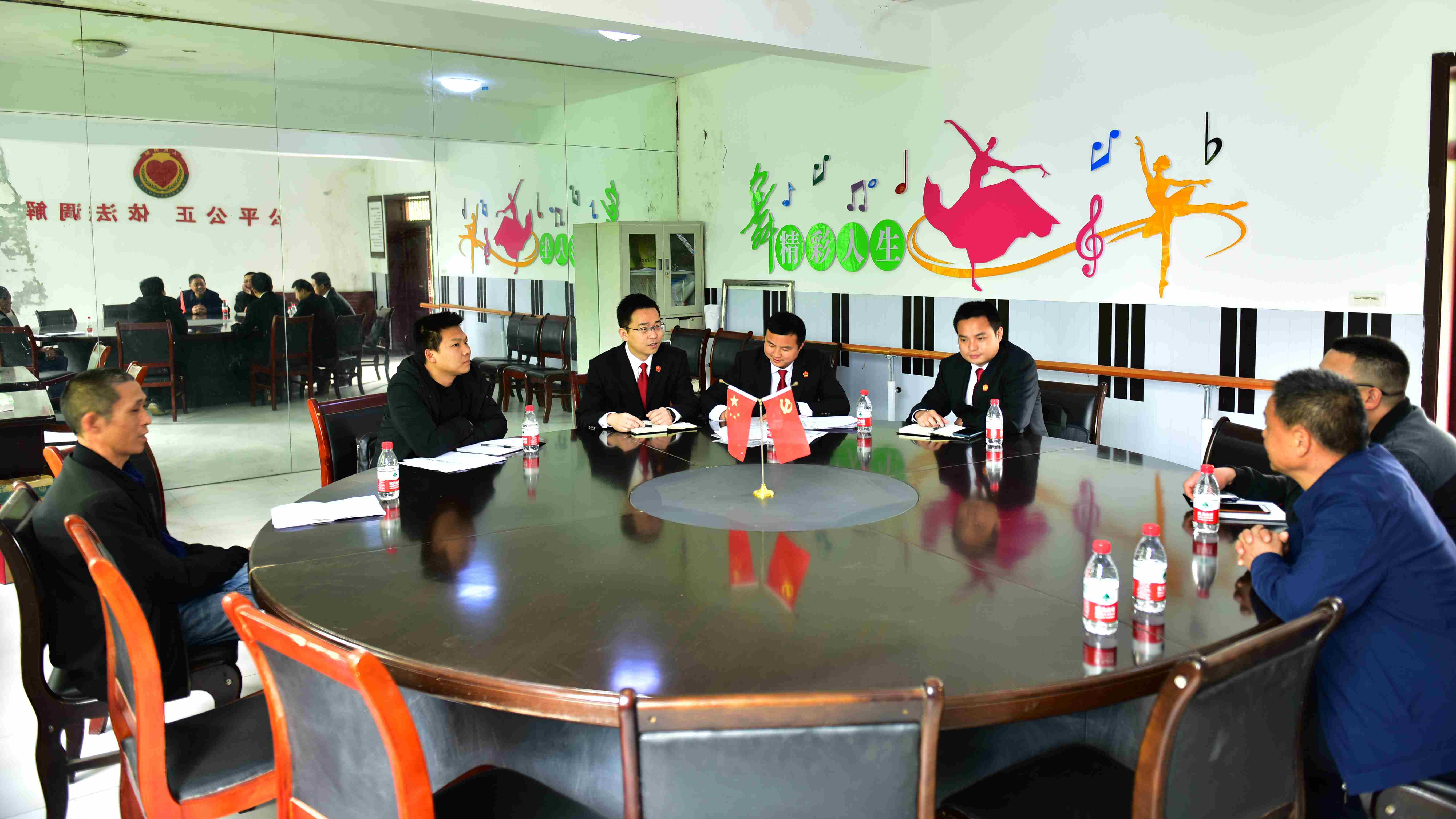 冒着淅沥的小雨,经过四十分钟的车程及十几分钟崎岖山路的步行,两江鱼复法庭的法官们来到复盛镇石庙村便民服务中心,中心的二楼就是老马工作室石庙村分室。