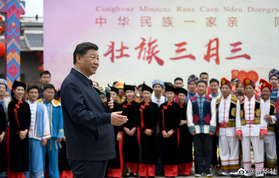 4月27日上午,正在广西南宁考察调研的习近平总书记,来到广西民族博物馆,参观壮族文化展,观看三月三“歌圩节”壮族对歌等民族文化活动展示,了解促进民族团结进步和民族文化保护传承等情况。