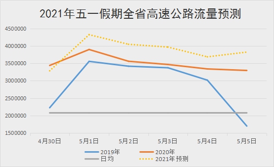 2021年“五一”小长假从5月1日至5日,共5天。受疫情防控形势持续向好和7座以下小车高速免费通行等影响,公众出行需求集中释放。“五一”黄金周,全省高速公路拥堵概率大幅上升,通行保障及事故预防均面临较大压力。现就相关形势研判及安全提示如下。