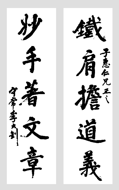 “铁肩担道义,妙手著文章”,这是李大钊1916年9月手书的一副对联。明朝忠臣杨继盛有“铁肩担道义,辣手著文章”之言,李大钊改“辣”为“妙”,更具斗争策略。这副对联贴切描述了李大钊的一生。铁肩担道义,他绝不叛党为革命肝脑涂地;妙手著文章,他传播马列主义影响一代人。(易舜)