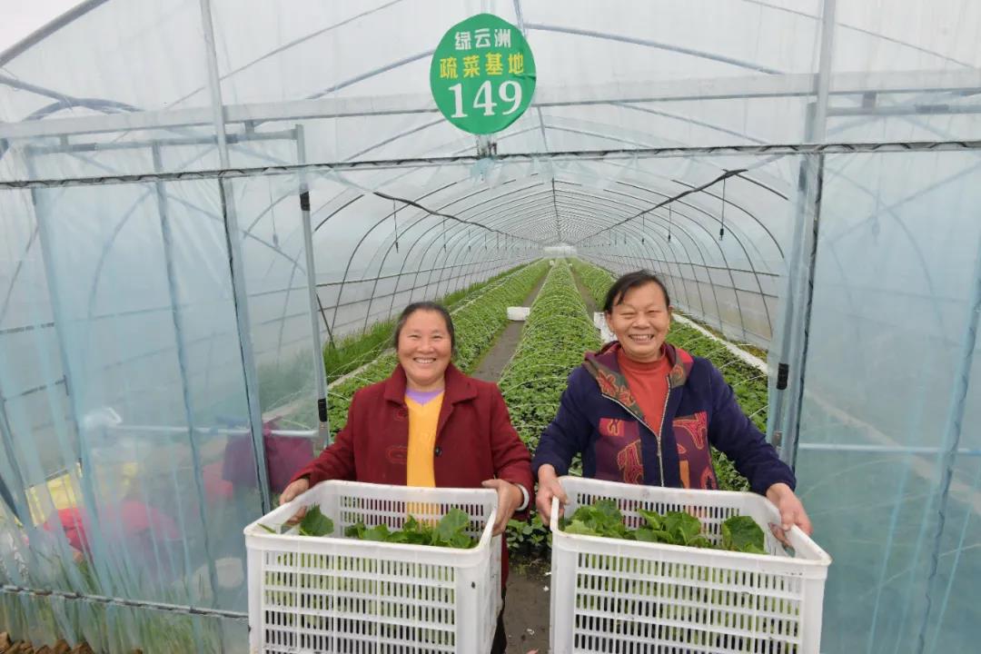 安义县东阳镇徐埠村村民在江西绿云洲大棚种植生产基地喜迎丰收。