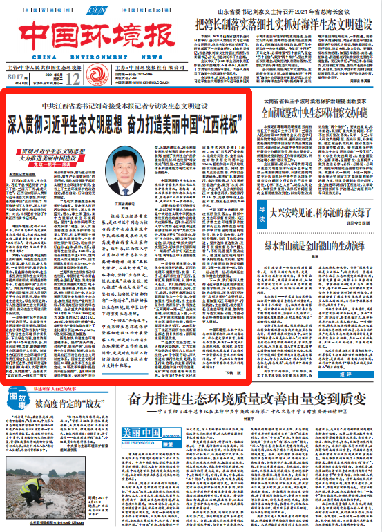 中国环境报:“十四五”时期,开启全面建设社会主义现代化国家新征程,江西如何把握住重要机遇,优化产业布局,用生态优先、绿色底色推动高质量发展?
