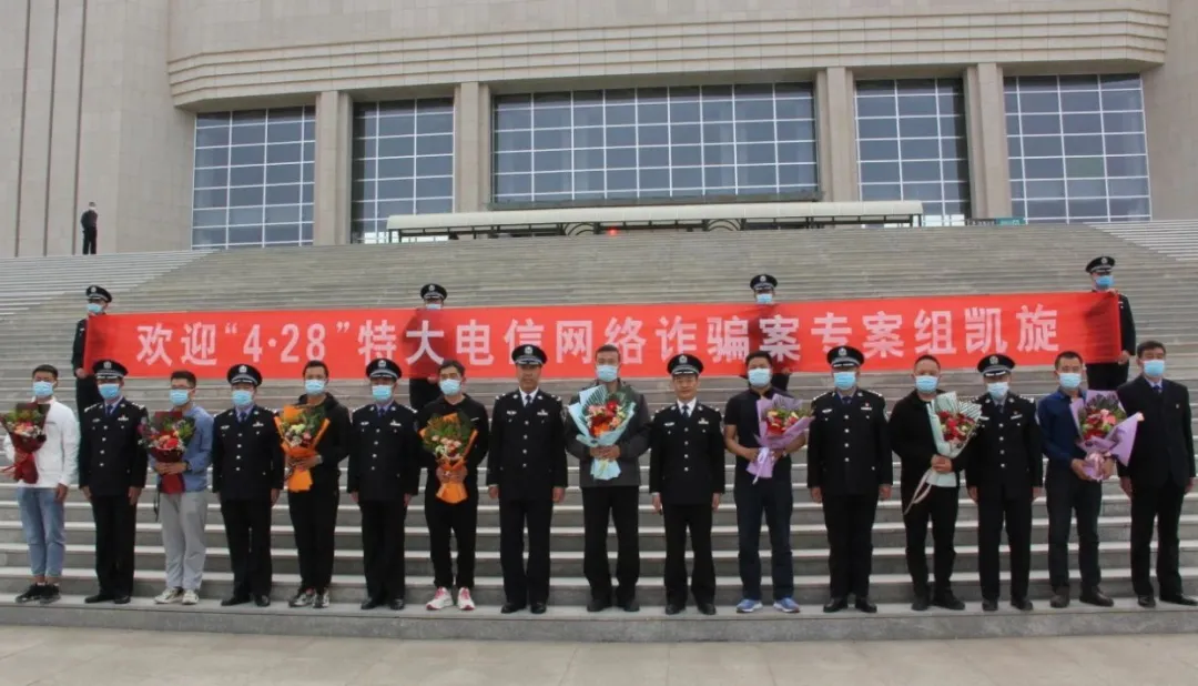 5月9日下午,永昌县公安局在金昌火车站站前广场举行欢迎仪式,迎接侦办“4.28”特大电信网络诈骗案专案组参战人员凯旋。受金昌市副市长、市公安局党委书记、局长李辉委托,市公安局党委委员、副局长李毅参加欢迎仪式,并代表市公安局党委慰问全体参战人员,向专案组全体参战民警凯旋表示祝贺。副县长、永昌县公安局党委书记、局长雷小宁主持欢迎仪式。