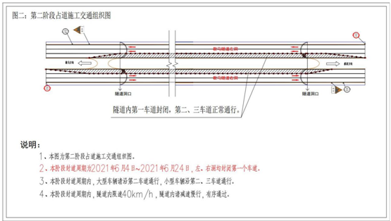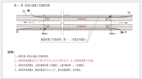 第一阶段(2021年5月18日至2021年6月3日),双向占用最右侧一车道,双向各两车道通行;