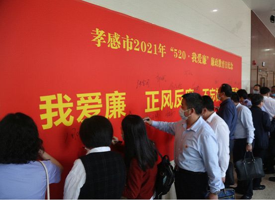 在中国共产党即将迎来百年诞辰之际,5月20日,孝感市委举行以“我爱廉正风反腐不忘初心迎百年”为主题的“520·我爱廉”廉政教育日活动,集中发布廉政教育倡议书,对市本级纪检监察、巡察、政法系统干部、新任县级领导干部及家属开展集中廉政教育。