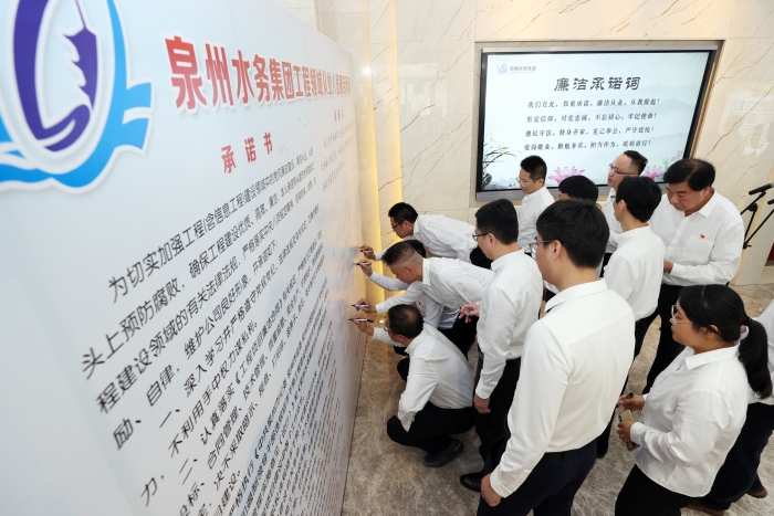 泉州水务集团党委、纪委组织工程领域从业人员签订廉洁承诺书,增强不想腐的自觉(张九强 摄)