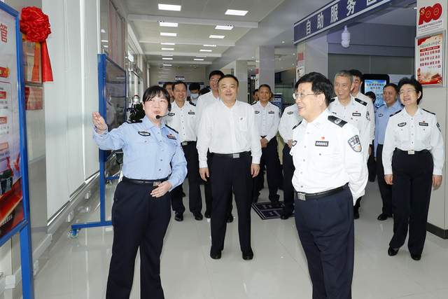 5月22日至24日,国务委员、公安部党委书记、部长赵克志在广西调研。图为赵克志在桂林市公安局出入境管理支队证件受理大队秀峰接待大厅,认真听取开展党史学习教育情况。满博摄影