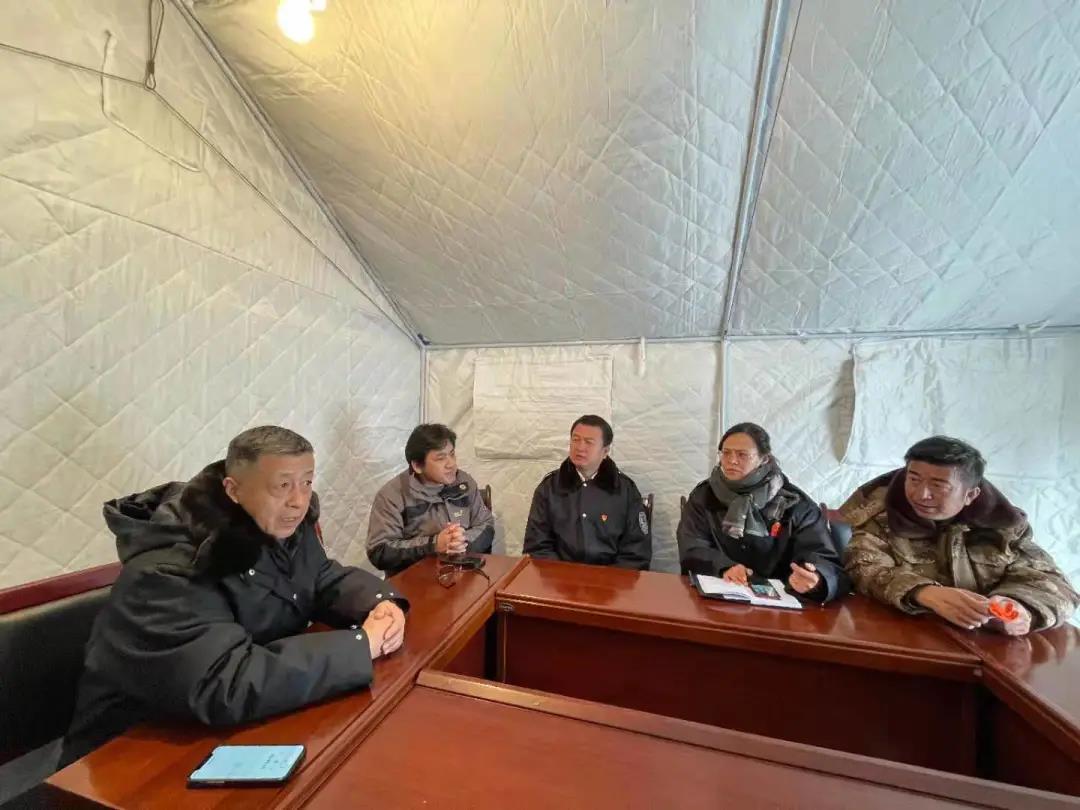 甘韬副厅长到达玛多后,立即前往抗震救灾应急指挥部与州县主要领导及时了解人员受灾情况、物资储备情况和政法干警人身安全情况,慰问基层一线民警,了解司法局工作人员安全情况及办公室用房和住房受损情况,并对做好下一步抗震救灾工作进行安排部署。