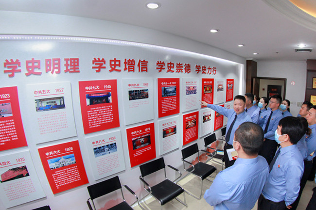 四川省成都市检察院党史党建活动室和人民检察史长廊近日启用,为干警学习党史提供了平台。人民检察史长廊将党史学习教育与学习新中国史、改革开放史、社会主义发展史、人民检察史结合起来,引导检察人员深刻认识检察制度的建设和实践。图为该院干警在党史党建活动室和人民检察史长廊观看学习。